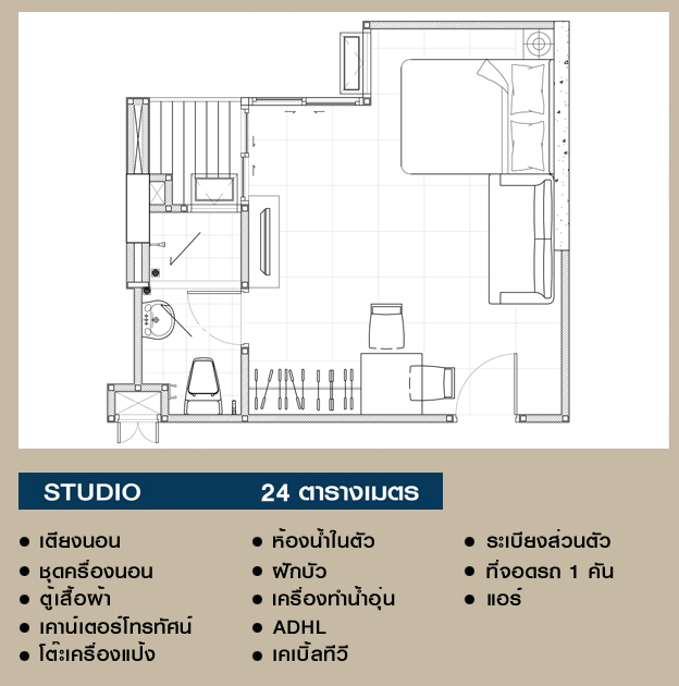 สะอาด สะดวก สบาย ภายในห้องมีสิ่งอำนวยความสะดวกครบครัน เฟอร์นิเจอร์ครบชุด,เครื่องทำน้ำอุ่น,ระบบประตู key card, WiFi-Internet, ทีวี ดาวเทียม,เครื่องซักและอบผ้าแบบหยอดเหรียญ,รปภ.ตลอด 24 ชม.และ CCTV